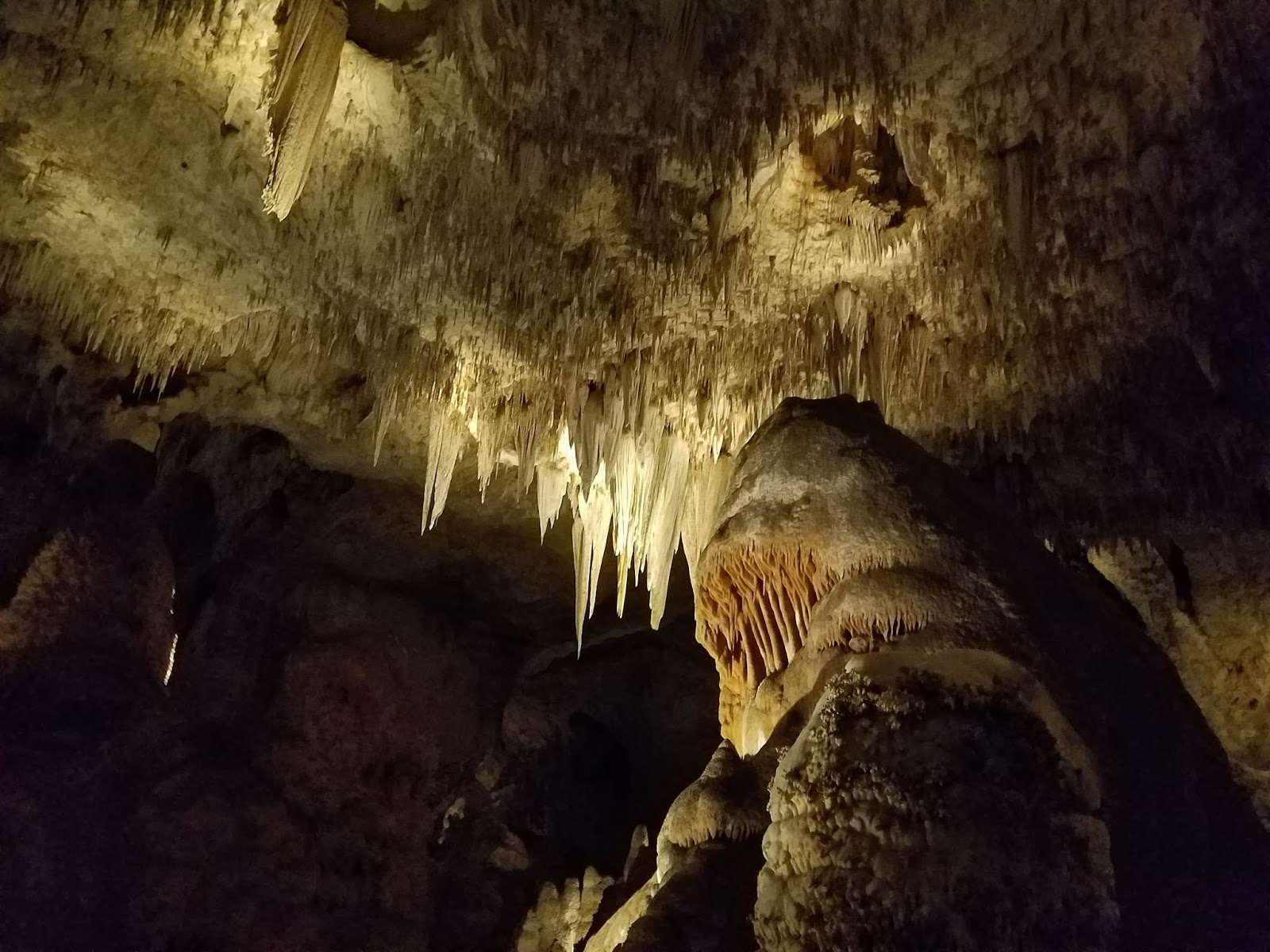 As first time visitors to Carlsbad Caverns in New Mexico, our goal was to see the Big Room, the largest single cave chamber by volume in North America. There are ranger guided tours to other parts of the caverns, and other nearby caves and routes that offer advanced caving adventures. That wasn't in the cards for a family visit. We did the standard unguided tour descending from the natural entrance and doing a loop around the Big Room. There were a lot of visitors this time of year so starting early was a good strategy. It was actually colder outside than inside the caverns and I ended up taking off my jacket about half way through. The cave system maintains a temperature in the mid 50s. We descended 750' down a smooth asphalt trail. The trail has texture to give you extra traction. I had no problems in my regular running shoes. The entire cavern system is dimly lit. Well placed lighting drew attention to most of the attractions. At the bottom of the descent was a rest area, restroom, and a snack bar. From there, we started the 1.5 mile loop around the big room. There were crowds around the start of the loop, but it thinned out as we got deeper. It's astounding how large the cavern system is and how almost every imaginable cave formation is on display, at small and large scales. Reading up on how the caverns formed, it was a combination of perfect geology and chemical action (H2SO4). Individual caverens were carved out, then joined into the larger system. I wondered at one point how the tons of earth and rock above us didn't crash down on our heads. I don't really understand the mechanics of cave systems and what makes them stable or unstable. After finishing the loop, we rode the elevator back to the surface. The standard unguided hike should be easy for anyone without physical ailments. The entrance fee is going up to $12 in 2018 and food is not allowed.