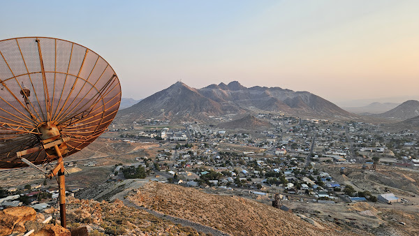 It was hot in Tonopah, NV when I arrived. I was passing through and thought I might be able to get one of the local peaks close to sunset. I decided to hit Mount Oddie. I drove less than half a mile on a dirt road to reach the shaded east side. I parked at the start of the steep part of the road and set out with no pack and no water. After 7 PM, it had cooled off to around 70F and I completed the round trip in 25 minutes. A small rock outcrop near the tower was the high point. No marks, no register. I had a nice view of Tonopah and the other peaks.